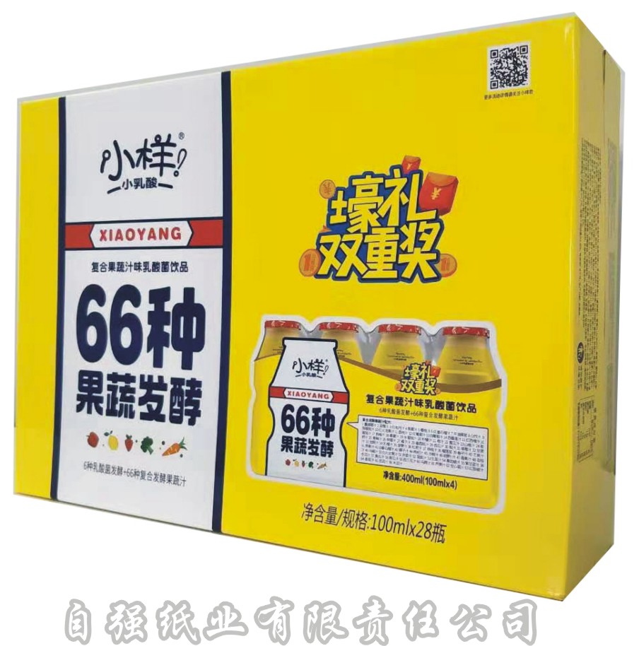 自強包裝擁有1.8米7層高速瓦楞紙板線1條、1.8米2層高速瓦楞紙板線1條、全自動8色預印機1臺、自動4色至5色高速水墨印刷機3臺、全自動5色至5+1膠印機2臺、全自動粘箱機2臺、全自動粘釘機1臺、全自動裱紙機2臺、全自動模切機3臺、全自動覆膜機1臺、UV上光機一臺,日紙板產能達到40萬平方米以上、日紙箱產能達到50萬件以上。